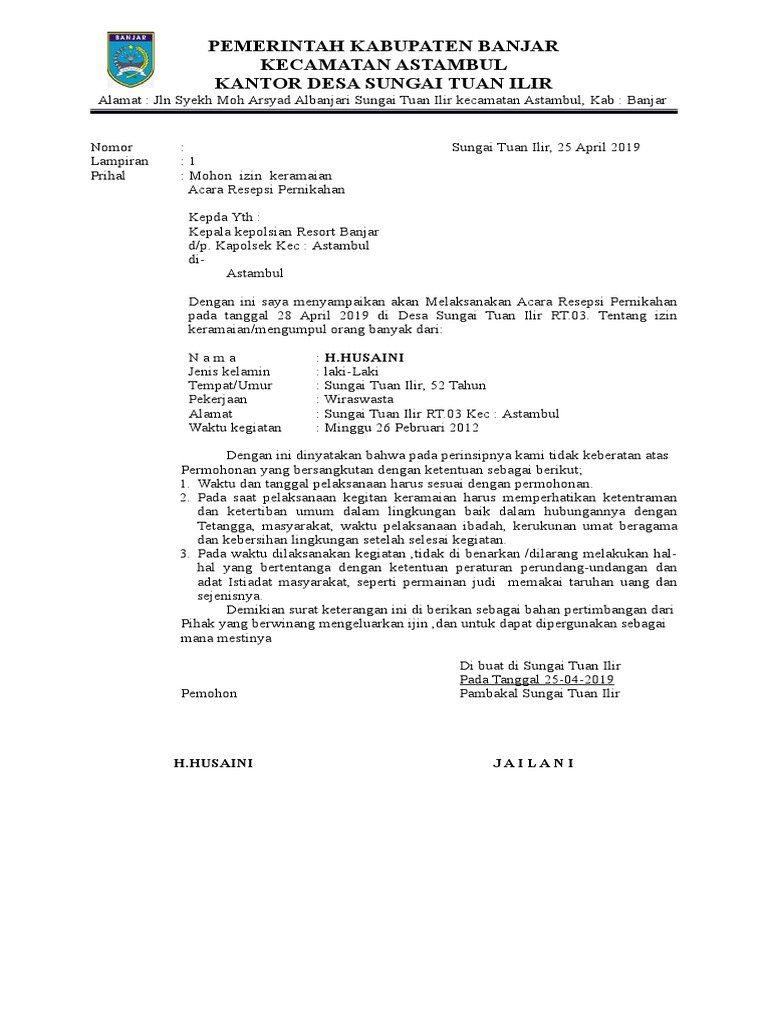 Surat Permohonan Izin Keramaian Pernikahan