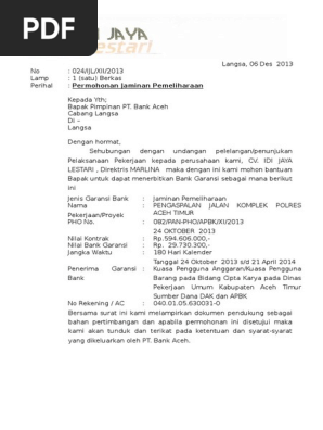 Surat Permohonan Jaminan Pemeliharaan