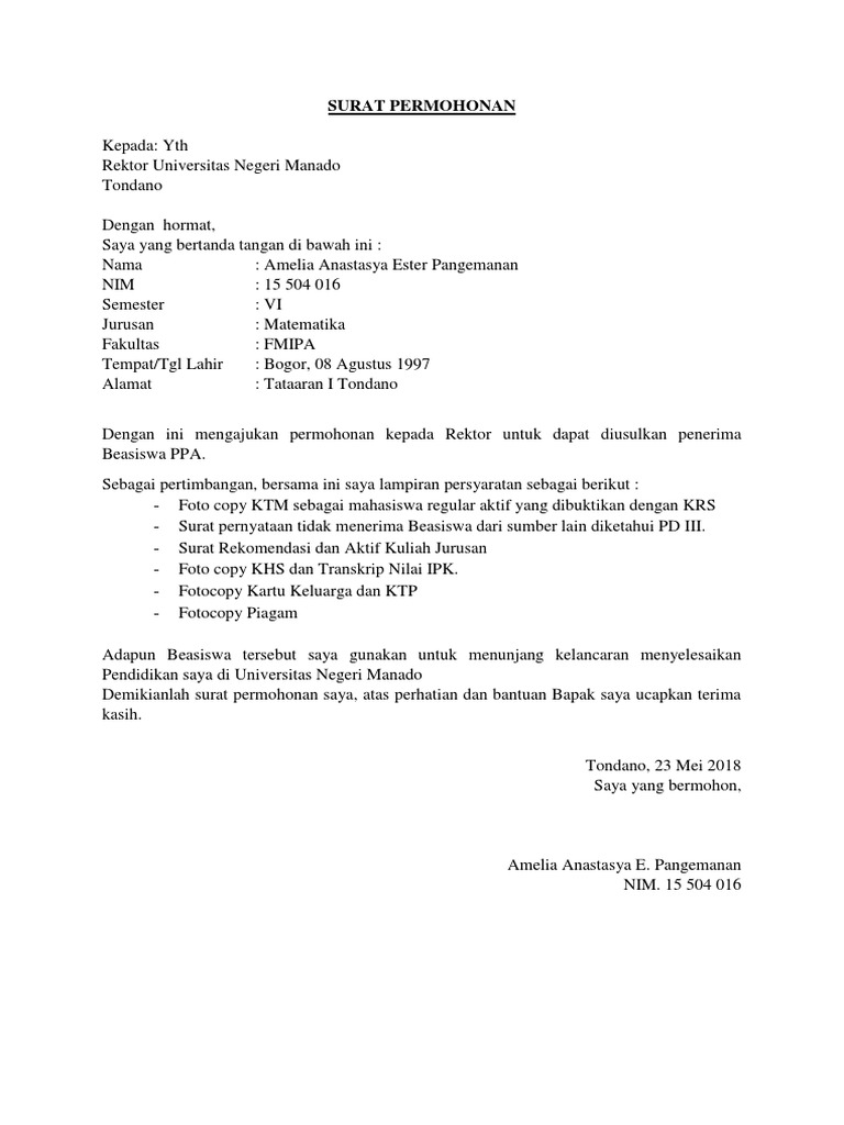 Gambar Contoh Surat Permohonan Kepada Rektor yang Baik 2019. Contoh Surat Permohonan Beasiswa Kuliah dapat anda ajukan untuk rektor di universitas tempat anda kuliah sekarang ini. SURAT PERMOHONAN PINDAH KULIAH Kepada Yth.