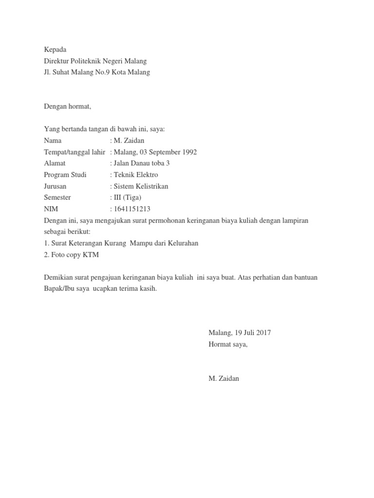 Surat permohonan keringanan biaya kuliah word. Agar permohonan tersebut dikabulkan ada saatnya kamu akan meminta atau memohon bantuan kepada orang lain dan biasanya harus mengajukan surat permohonan. Surat permohonan keringanan biaya kuliah. Jika mahasiswa sedang tidak bisa atau berhalangan dalam membayar SPP maka surat permohonan dispensasi sangat dibutuhkan.