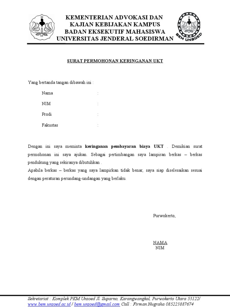 1 PEMBERIAN KERINGANAN PEMBAYARAN UKT S1 DAN. 5 contoh surat permohonan keringanan biaya sekolah kuliah yang benar bisa menempuh sekolah dan perkuliahan dengan lancar tanpa terkendala biaya adalah impian setiap orang. Contoh Surat Dispensasi Kuliah untuk Memohon Keringanan Biaya Masuk Kuliah.