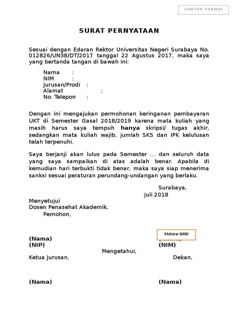 Surat Permohonan Penurunan Ukt. Surat Penyataan Permohonan Keringanan Saya yang bertanda tangan dibawah ini. Wakil rektor bidang umum dan keuangan.