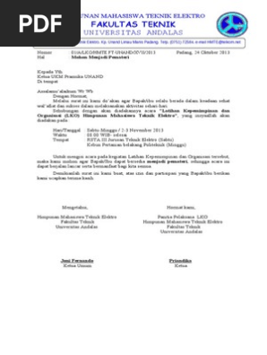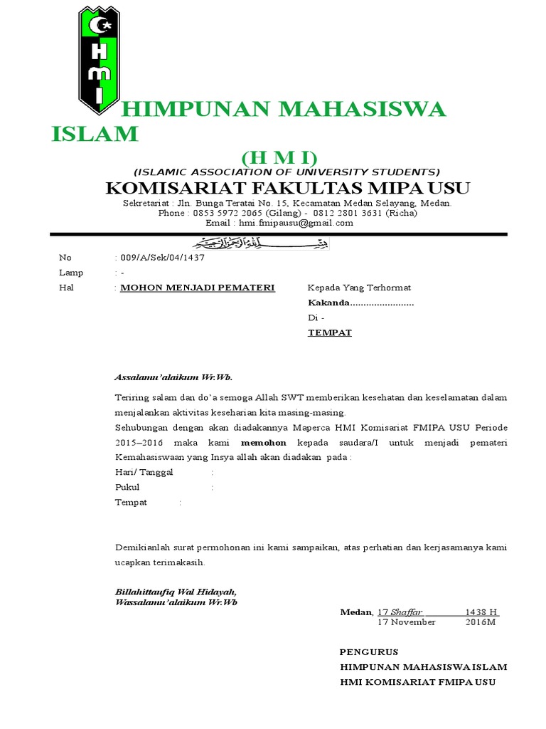 Caringin 13 Juli 2008 No. Dan keberadaan surat permohonan Pembicara ini sangat penting karena surat ini merupakan bentuk sopan ketika kita meminta seseorang untuk mengisi acara suatu kegiatan. Kegiatan Organisasi Kampus Eksternal Kampus Maupun Instansi Pemerintahan Formal dan Non-Formal untuk membaca artikel selengkapnya dengan klik link di atas.