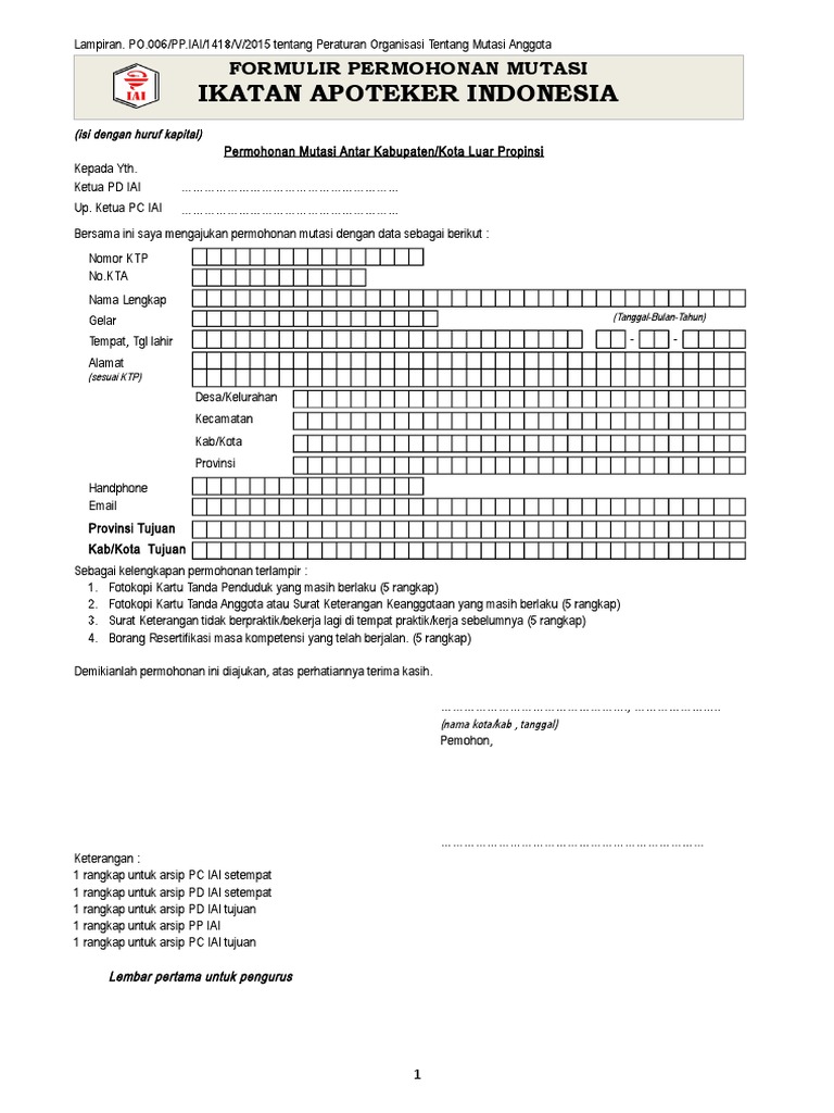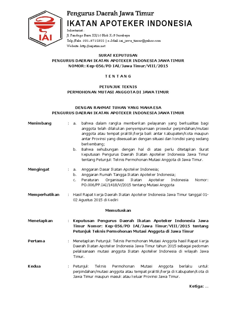 Surat Pernyataan Kepala. Surat terbuka yang diposting melalui akun facebook pribadinya 5102020 muncul setelah PD IAI Lampung menerbitkan surat penolakan mutasi anggota dikarenakan surat permohonan mutasi yang dikeluarkan oleh PD IAI Jawa Tengah Jateng tidak ditandatangani oleh Pelaksana Tugas Plt Ketua PD IAI Jateng Drs. Surat Keterangan Dokter 3.