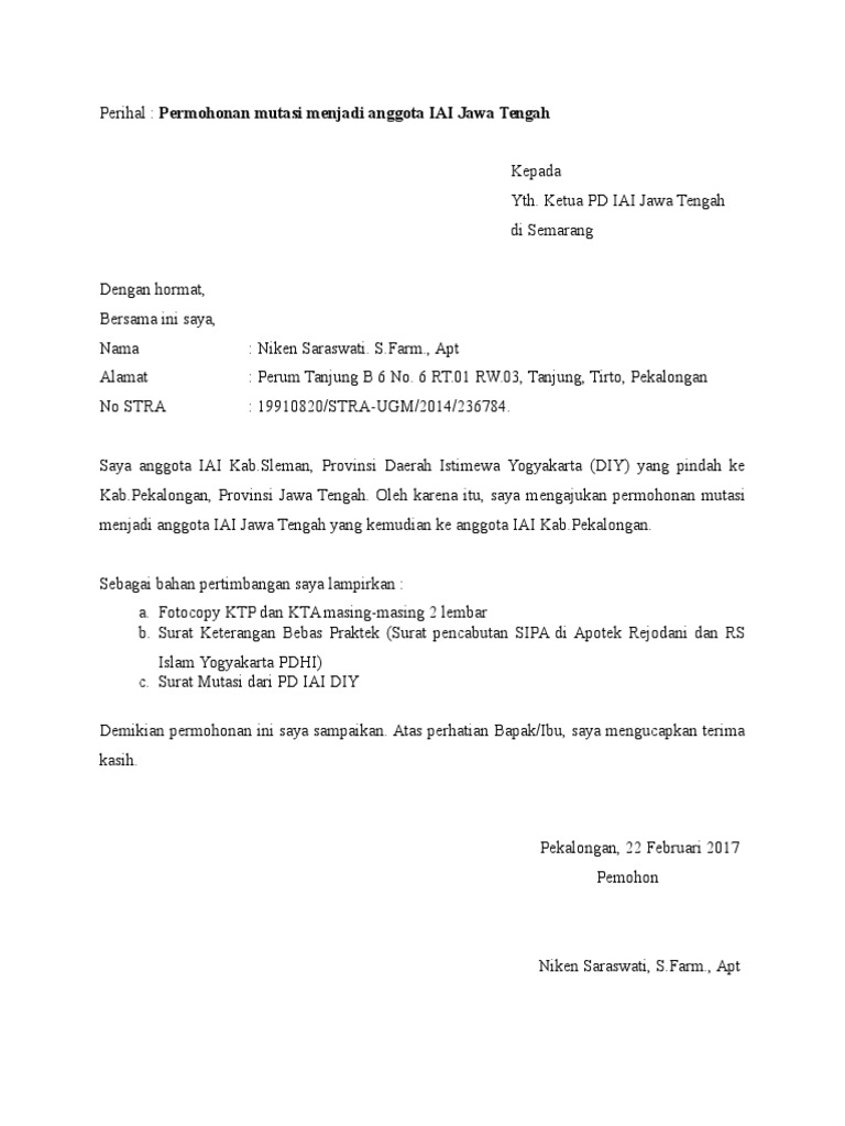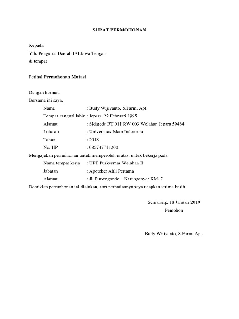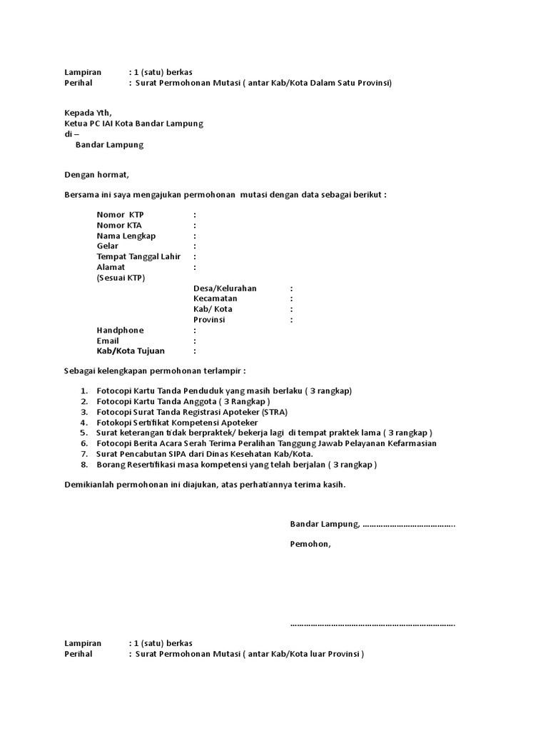 Surat permohonan mutasi iai. Sebelum tahu dan download contoh surat mutasi guru yang kami sampaikan disini alangkah baiknya untuk kamu tahu beberapa hal mengenai. Contoh Surat Permohonan Mutasi Barang have a graphic associated with the otherContoh Surat Permohonan Mutasi Barang It also will feature a picture of a kind that may be seen in the gallery of Contoh Surat Permohonan Mutasi Barang. Dengan surat ini saya mengajukan permohonan pindah tugas mutasi dari Dinas Pendidikan Pemerintah Kabupaten Sleman ke Pemerintah Daerah Surabaya.