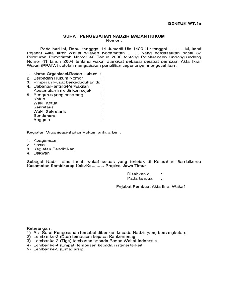 Contoh sk surat keputusan masjid al hikmah friday february 08 2013 contoh surat dalam suatu perkumpulan komunitas organisasi ataupun peguyuban pastilah disitu ada satu yang menjadi nahkodanya yaitu ketua. Surat pernyataan dari Nazhir bahwa tanahnya tidak dalam sengketa perkara sita dan tidak dijaminkan. 41 tahun 2004 tentang Wakaf dijelaskan bahwa nadzir wakaf ada dua yaitu nadzir perseorangan dan nadzir berbadan hukum.