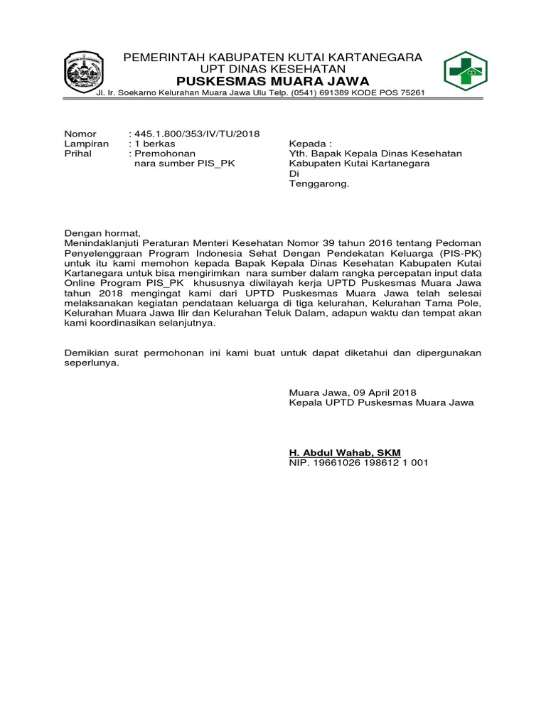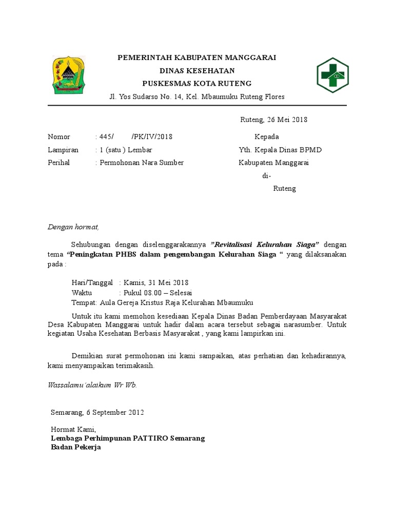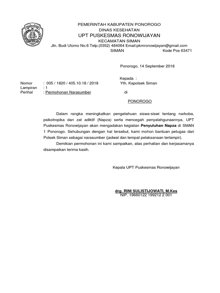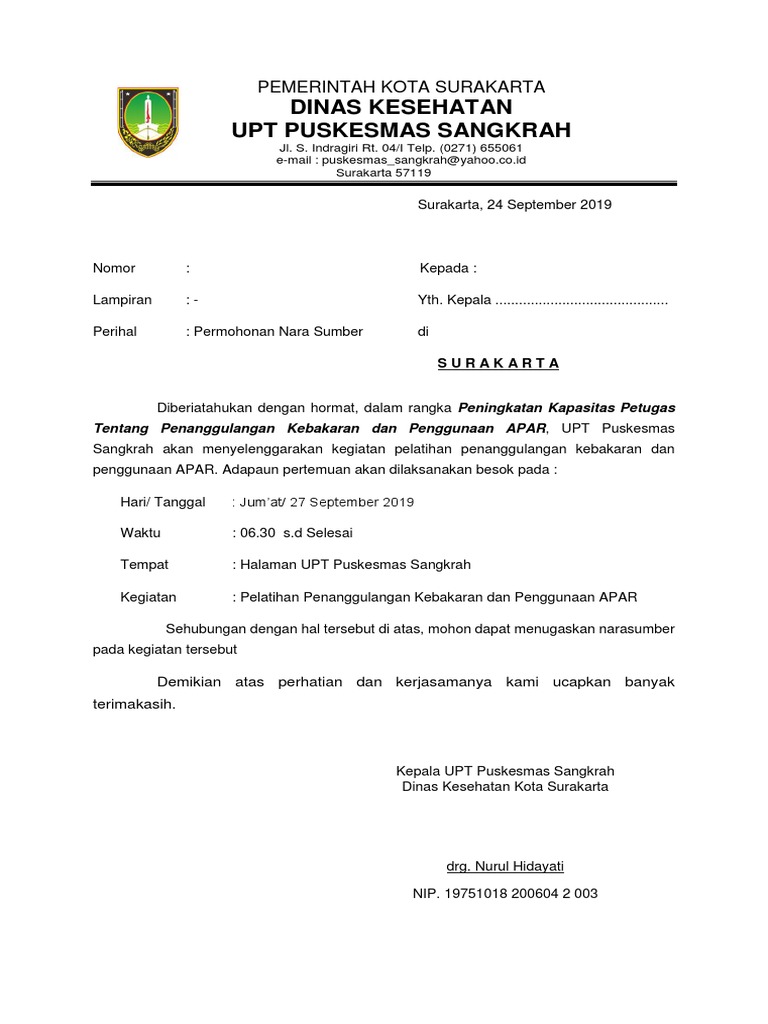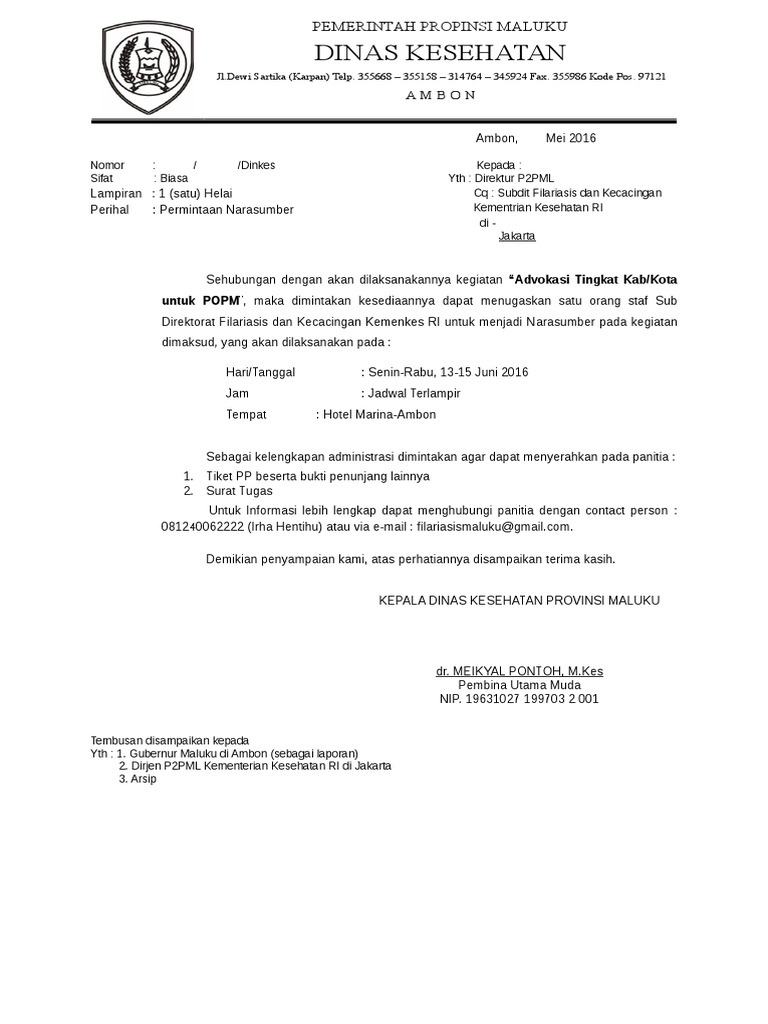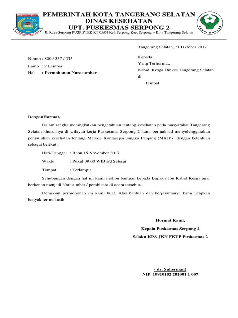 Surat permohonan narasumber dinas kesehatan. Hormat saya sumiyati meika sari nrp. Surat permohonan narasumber dinkes. Surat Permohonan Surat Dinas.