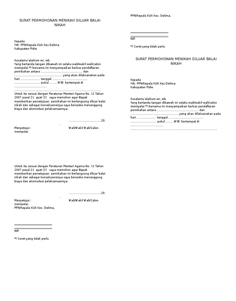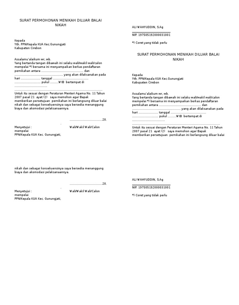 Surat Permohonan Nikah Di Luar Kua