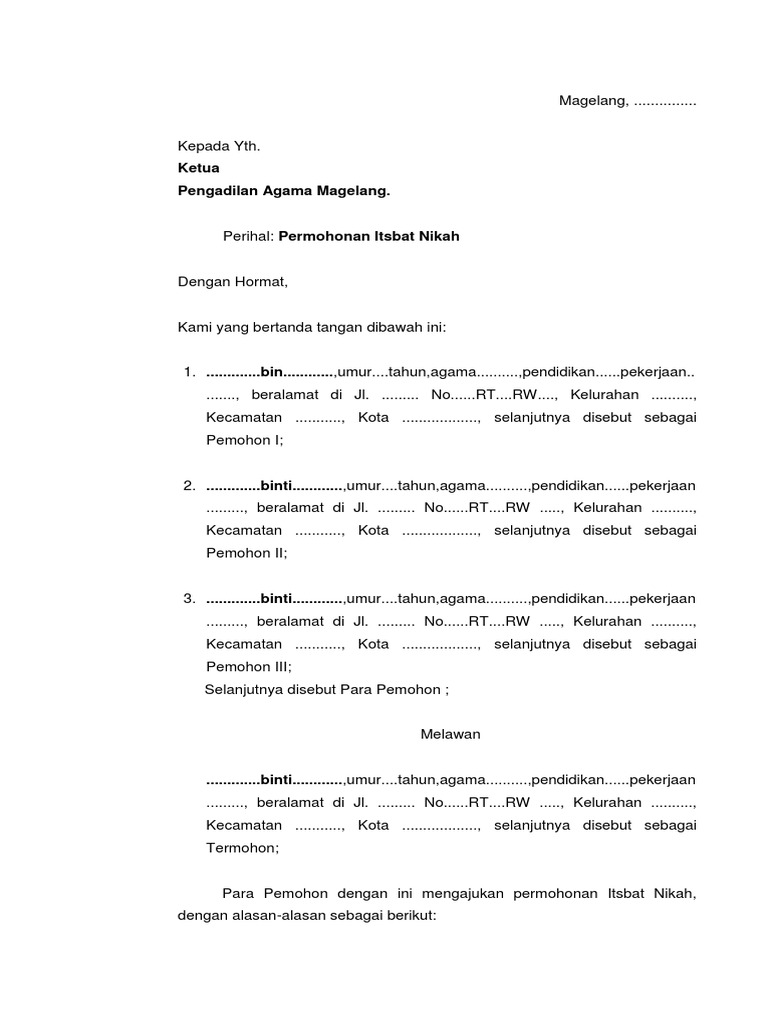 Permohonan Isbat Nikah Voluntair K e p a d a Yth. Jasa Hotspot Wifi Jasa Instalasi P. Mengeluarkan Surat Penolakan Permohonan Kehendak Nikah terhadap anak di bawah umur tersebut.