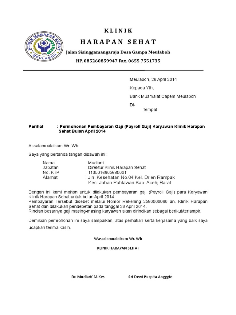 Surat Permohonan Pembayaran Gaji Doc