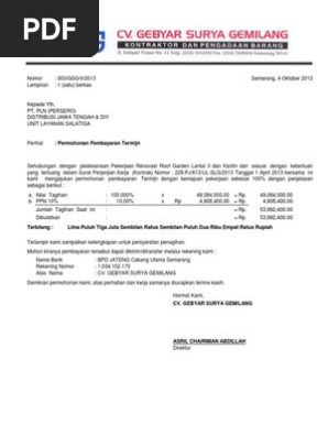 Berikut ini ilustrasi dari bentuk termin pembayaran kontrak lump sum dalam sebuah pekerjaan konstruksi dengan nilai kontrak senilai Rp. Surat permohonan contoh surat permohonan pelunasan. Larangan KKN penyalahgu naan wewenang penipuan 5.