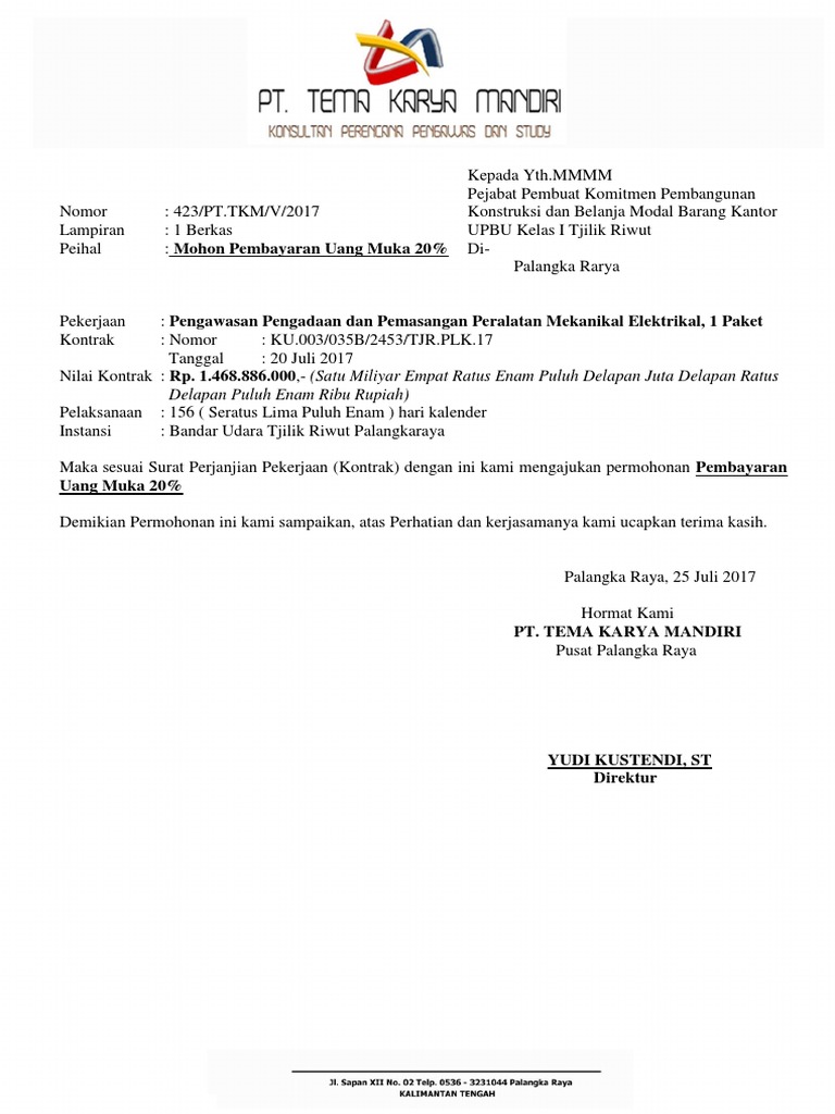 Surat permohonan pembayaran pekerjaan konstruksi. Pengalaman Melaksanakan Pekerjaan Konstruksi. Draf Perjanjian Jasa Pelaksana Konstruksi Harga. Demikian kami sampaikan surat permohonan ini atas perhatian dan kerjasamanya kami ucapkan terimakasih.