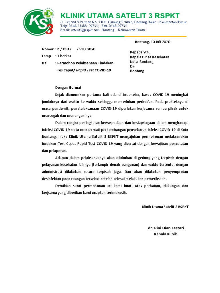 Surat permohonan pemeriksaan rapid test. Sejumlah warga yang melakukan rapid test mandiri di Klungkung berharap biayanya dapat lebih terjangkau lagi. Download Contoh Surat Hasil Rapid Test Surat ialah alat komunikasi antara seseorang dengan seseorang yang di kehendakinya yang berisi artikel pernyataan suatu isu keinginan dan tanggapan yang cocok dengan keinginan dari penulis surat hal yang demikian. Surat pengantar dari disos langsung dibawa ke rsud untuk rapid test dan ke sumbawa tecno park stp untuk swab test.