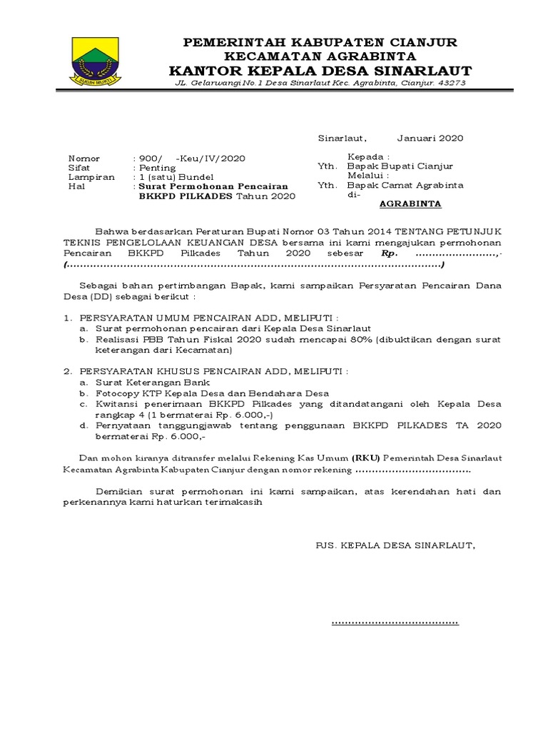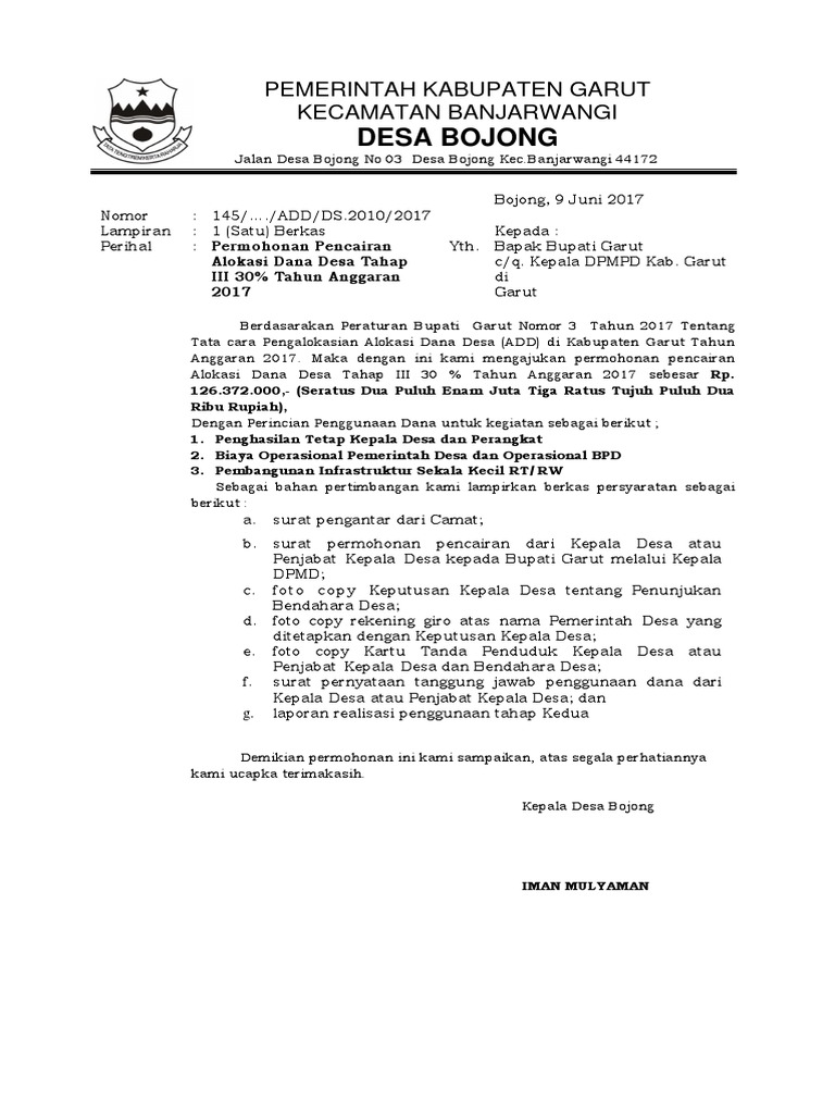 25 Contoh Surat Permohonan Resmi Terbaru Lengkap Contoh Surat Doc Permohonan Pencairan Dana Desa 2017 Keysha Sun Academia Edu. Contoh Surat Pengantar Dana Desa 2021 akan kita bagikan pada kesempatan kali ini SobatDesa bisa download formatnya di akhir artikel ini. Sebagai informasi Dana Desa akan disalurkan melalui tiga tahap yaitu tahap pertama 20 paling cepat bulan Januari dan paling lambat minggu ke-3 bulan Juni.