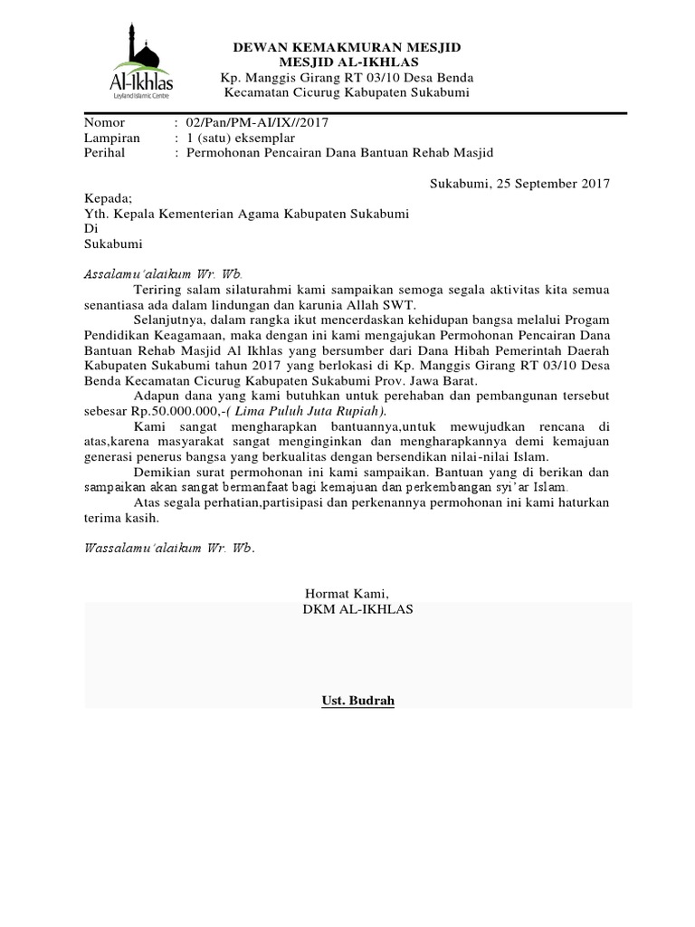 Surat permohonan pencairan dana proposal. Berikut ini Format Terbaru Surat Permohonan Pencairan Dana Desa dalam bentuk format word doc dan pdf. PEMERINTAH KOTA MEDAN DINAS PENDIDIKAN KEBUDAYAAN SMA NEGERI 1 MEDAN Jl. Surat Pernyataan Belum Pernah Menerima Bantuan Tahun Sebelumnya 8.