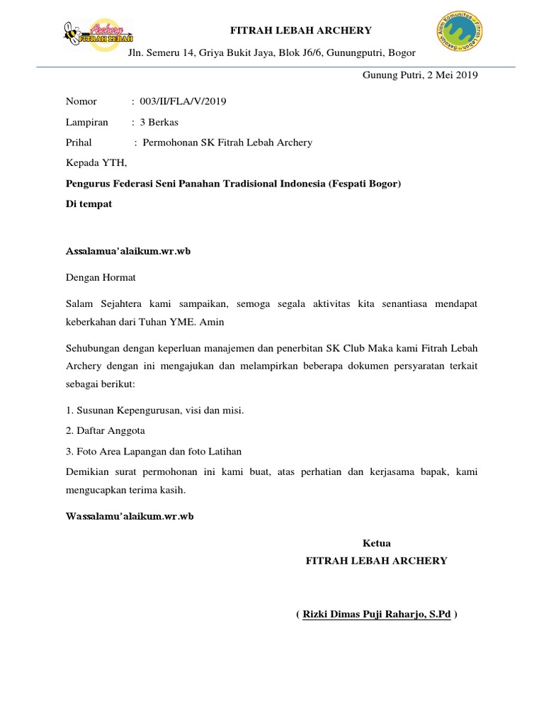 Bersama surat ini dengan hormat mengajukan permohonan kepada Ketua LP Maarif untuk permohonan pembuatan SK pegawai di MTs Maarif Darussholilin tahun Pelajaran 20182019. Permohonan Surat Izin Penelitian. Pemohon menyampaikan surat permohonan tertulis ditujukan kepada Kepala Dinas Sosial Kota Tangerang Selatan.
