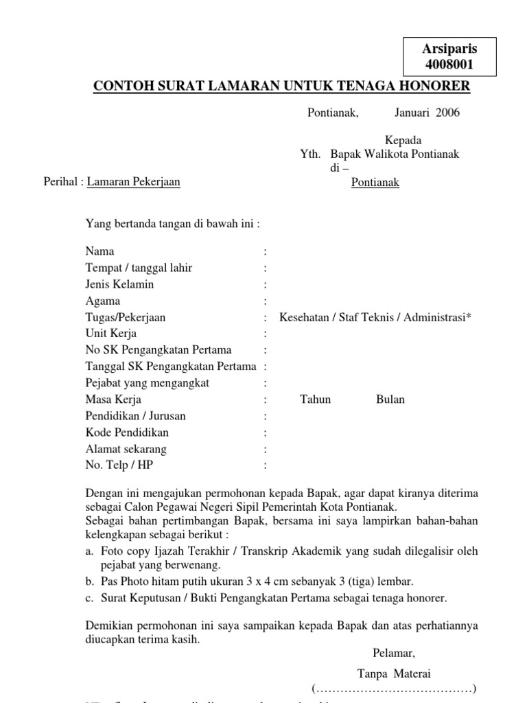 Surat Permohonan Pengangkatan Tenaga Honorer