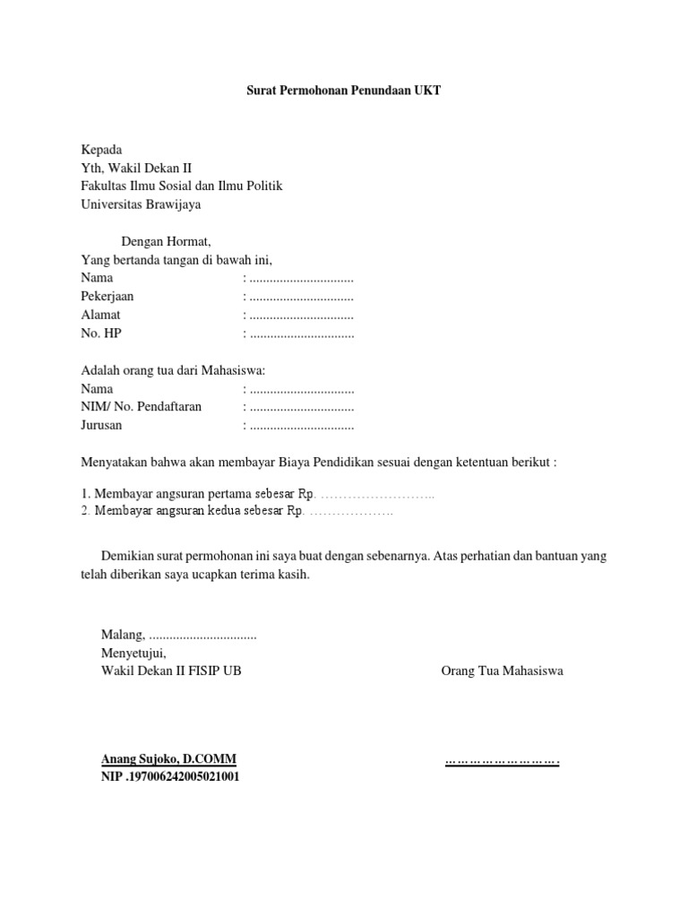 Surat Permohonan Penurunan Dan Penundaan Ukt Pdf Free Download. 99 contoh surat pengumuman cara membuat dan jenis jenisnya. Permohonan keringanan biaya kuliah dan penundaan pembayaran ukt lampiran.