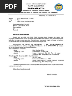 Surat Permohonan Pergantian Kepala Sekolah Untuk Bank Jatim