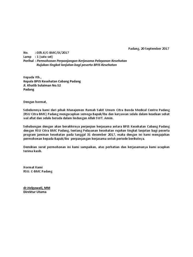 Surat permohonan perpanjangan kerjasama dengan bpjs. 15 Contoh Surat Permohonan Kerjasama di Berbagai Bidang - Sebagai suatu perusahaan yang ingin maju dan berkembang maka tentu harus menjalin kerjasama dengan perusahaan lain maupun berbagai pihak lain. Admin dari blog Kumpulan Contoh Surat 2019 juga mengumpulkan gambar-gambar lainnya terkait contoh surat permohonan kerjasama dengan bpjs dibawah ini. Surat permohonan kerjasama format dan contoh surat kerjasama kegiatan produk surat permohonan kerjasama merupakan sebuah surat resmi yang dibuat untuk menawarkan sebuah permintaan atau permohonan kerjasama kepada seseorang atau perusahaan agar mereka mau menerima tawaran.