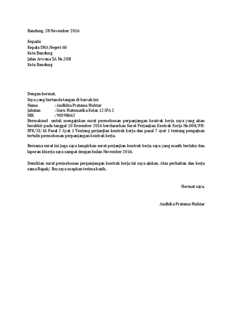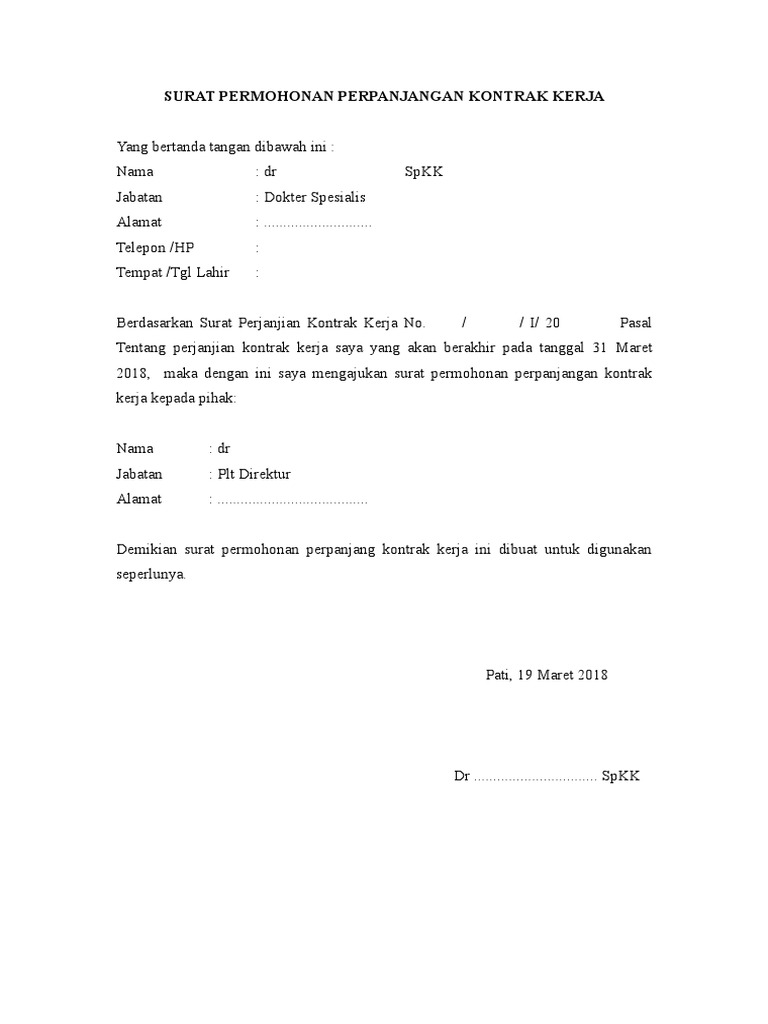 Berdasarkan surat perjanjian kontrak kerja No. Mulai Coba Gratis Batalkan kapan saja. Contoh surat permohonan perpanjangan kontrak kerja karyawan swasta.
