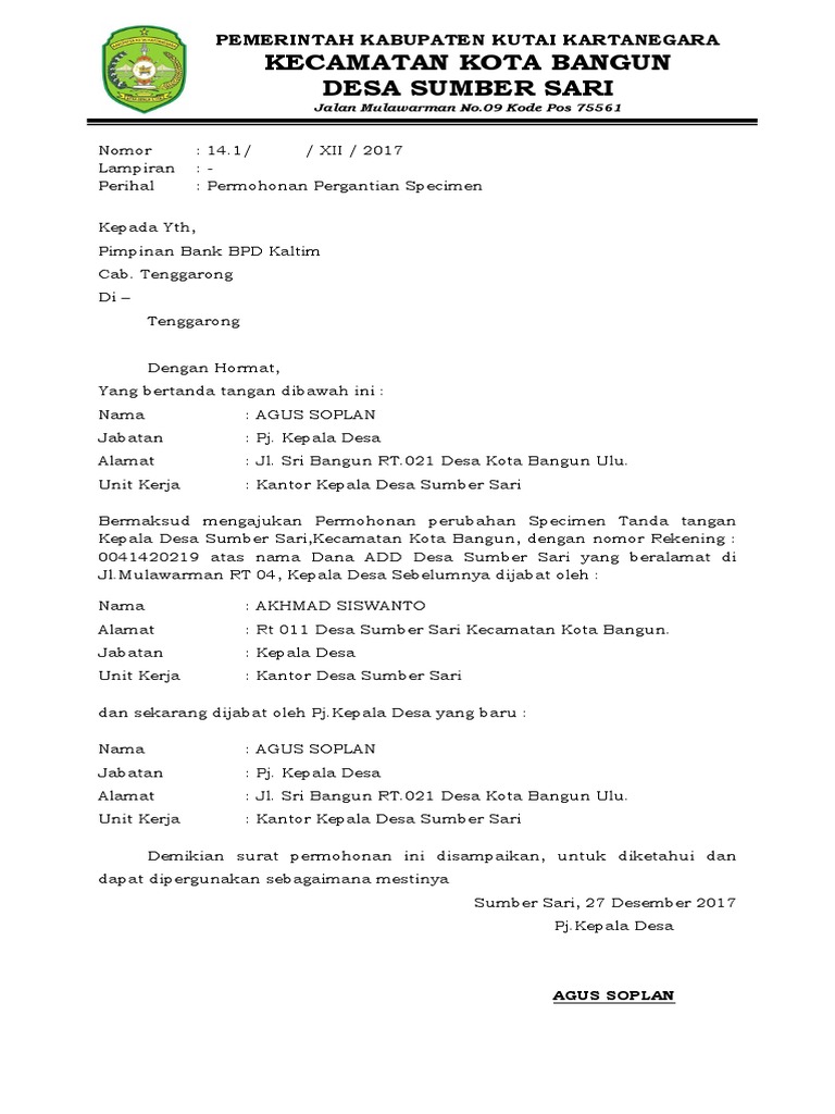 Surat permohonan pj kepala desa. Dalam hal pelaksana tugas harian PLT penunjukkannya dilakukan oleh Kepala desa melalui surat keputusan yang tembusannya dikirimkan kepada BPD dan Camat. Pelaksana tugas harian melaksanakan tugas dalam hal kepala desa tidak berada di tempat dalam waktu tertentu. If you are using mobile phone you could also use menu drawer from browser.