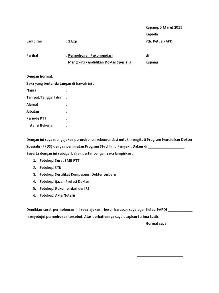 PC IBI mengusulkan surat permohonan rekomendasi perpanjangan STR ke PD IBI Melampirkan. Fotokopi identitas pemohon KTP 5. 15 Contoh Surat Permohonan Rekomendasi Paling Lengkap - Ada banyak contoh surat yang masih dipergunakan sekarang ini baik itu untuk kepentingan pribadi maupun untuk kepentingan kelompok.