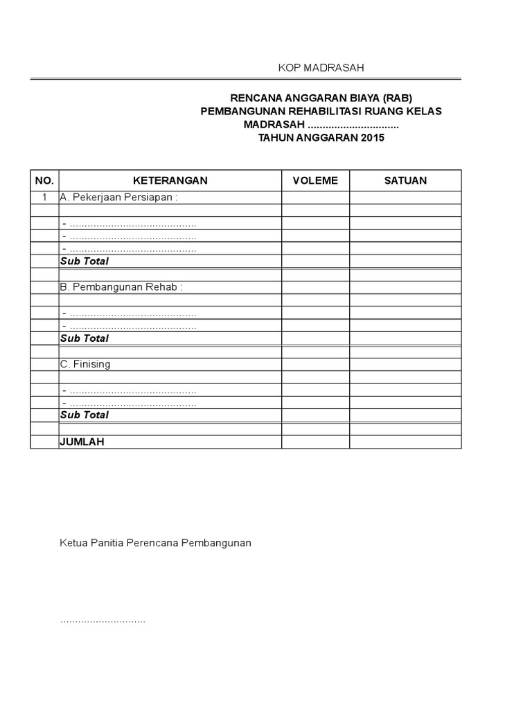 RENCANA ANGGARAN BIAYA Terlampir dalam bentuk Rencana Anggaran Biaya RAB E. Surat permohonan berisi tentang sebuah permintaan tentang sesuatu hal kepada pihak yang bersangkutan perseorangan badan atau lembaga organisasi perusahaan atau instansi dan lainnya. Artikel Contoh RAB Rencana Anggaran BIaya ini dipublish oleh Rhory Andhika pada hari Sabtu 03 Desember 2011Semoga artikel ini dapat bermanfaatTerimakasih atas kunjungan Anda silahkan tinggalkan komentarsudah ada 1komentar.