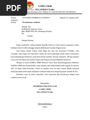Contoh Surat Permohonan Resmi Kepada Pemerintah. Audiensi merupakan pertemuan resmi yang dilakukan sekelompok orang atau masyarakat atau komunitas terhadap pejabat negara dan. Yogyakarta 15 Agustus 2011 Kepada Yth.