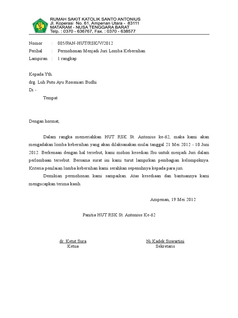 Surat Permohonan Sebagai Juri Lomba