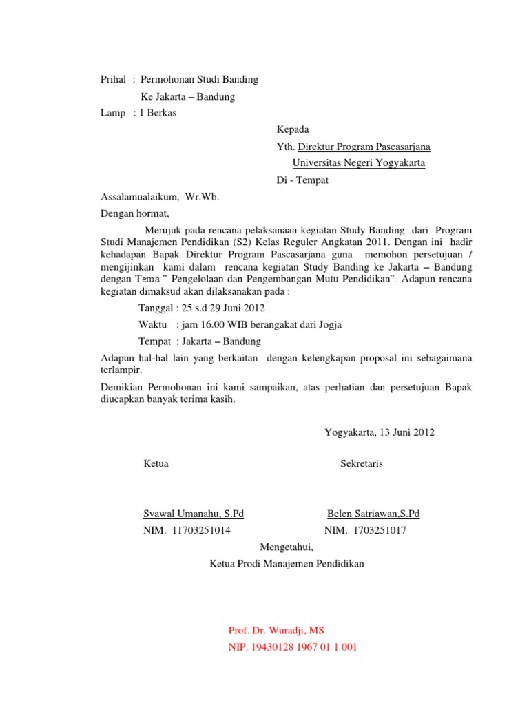 Surat Permohonan Studi Banding Doc