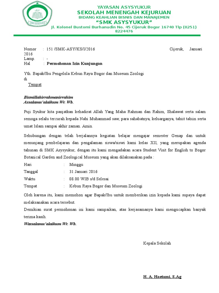 Sidoarjo 20 Oktober 2015 Mengetahui Hormat kami Kepala Sekolah. Contoh Surat Permohonan Kunjungan Industri. Demikian surat permohonan ijin dari kami atas ijin dan kerjasamanya kami sampaikan terima kasih.
