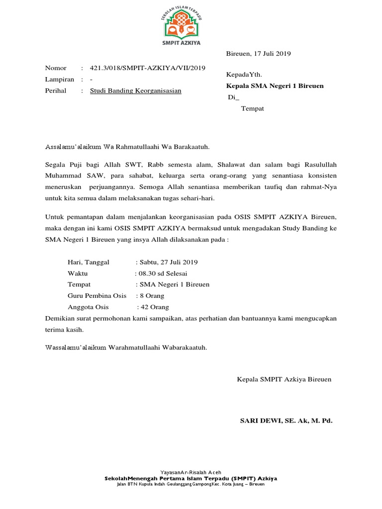 Surat Permohonan Studi Banding Sekolah