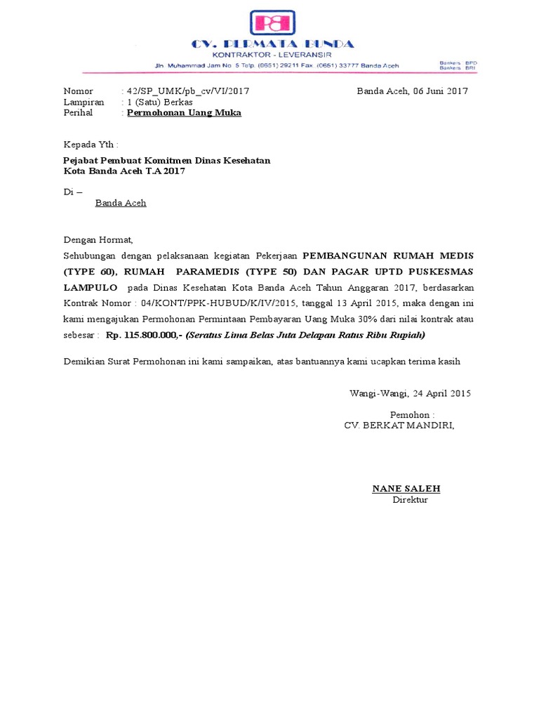 Surat Permohonan Uang Muka Doc