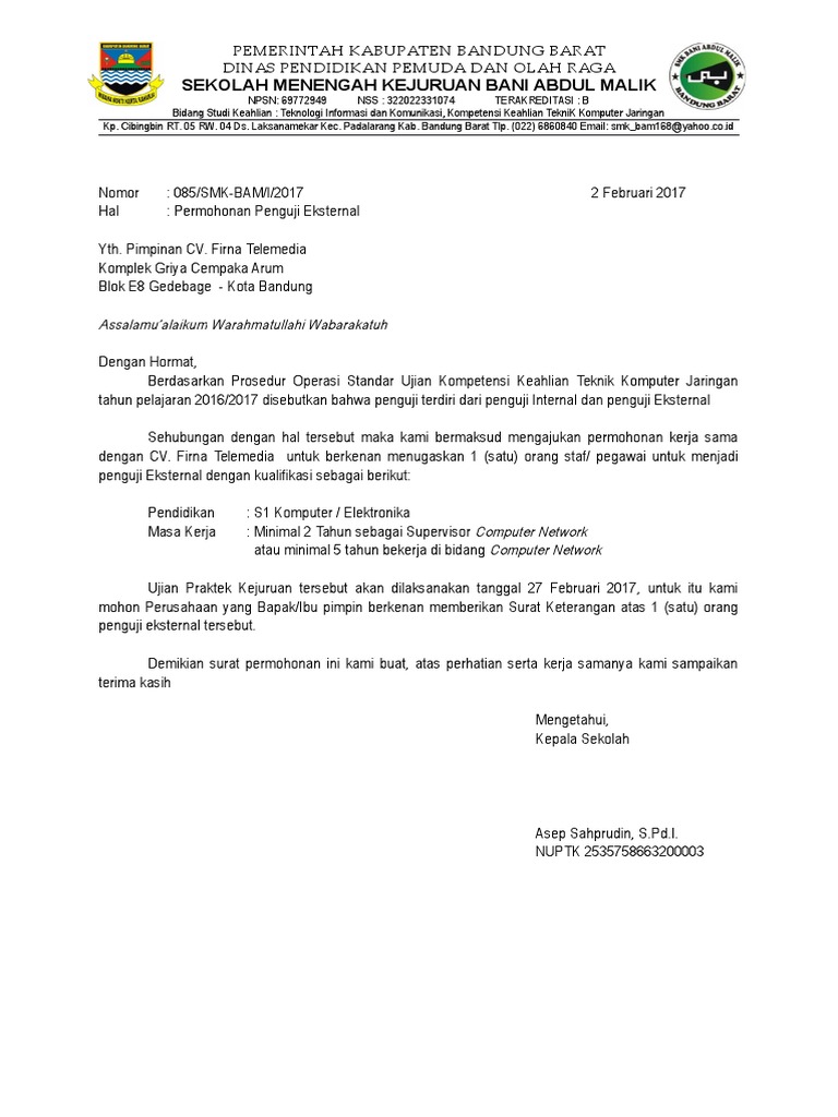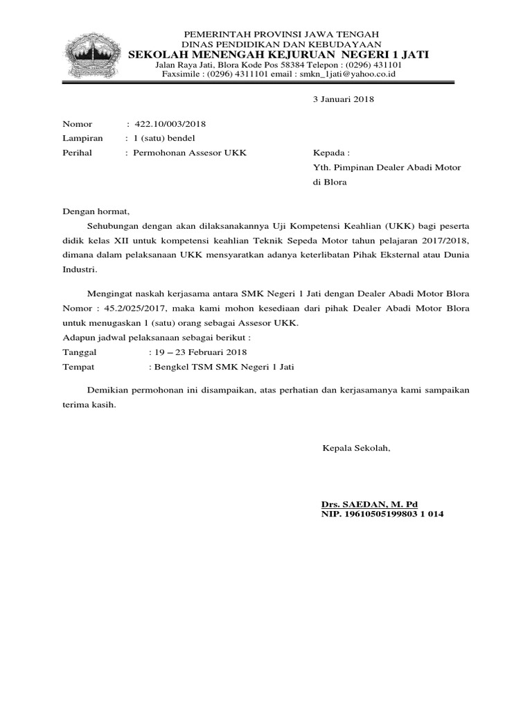 Surat permohonan uji kompetensi smk. Permohonan pemasangan jaringan internet. Sehubungan dengan akan dilaksanakan Ujian Nasional Kejuruan Kompetensi Keahlian Agribisnis Tanaman Perkebunan Tahun pelajaran 20172018 pada tanggal 26 Februari sd 01 Maret 2018 maka dari itu kami mengajukan surat permohonan tempat pelaksanaan Uji Kompetensi Keahlian di perusahaan yang bapak pimpin. March 22 2017 Uncategorized No comments.