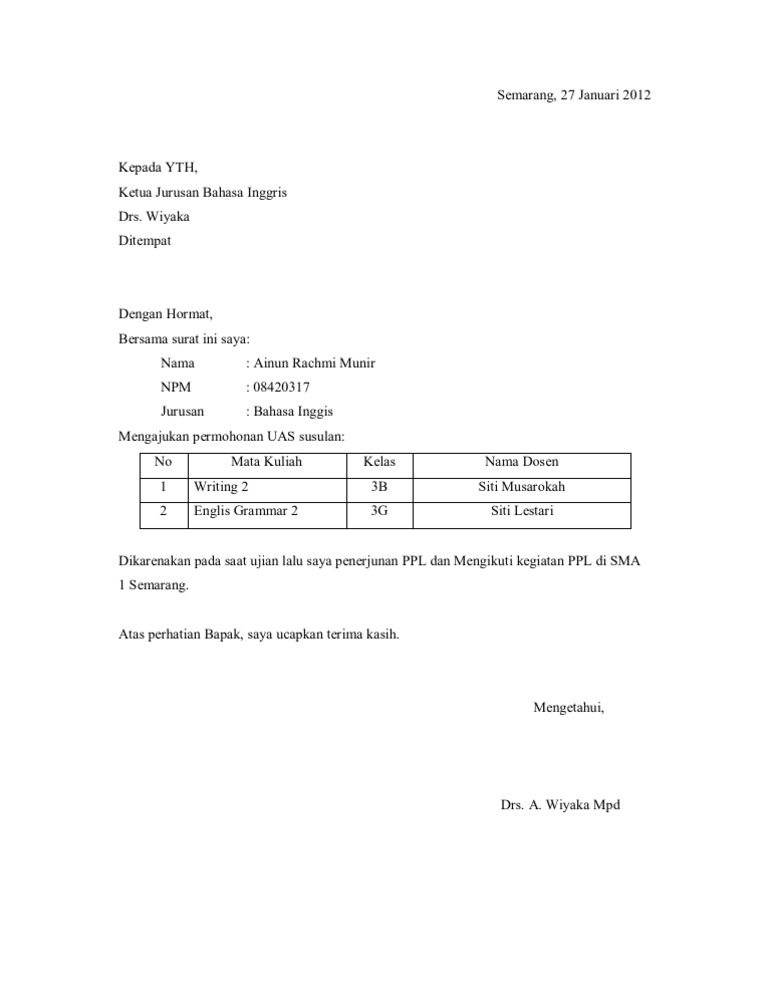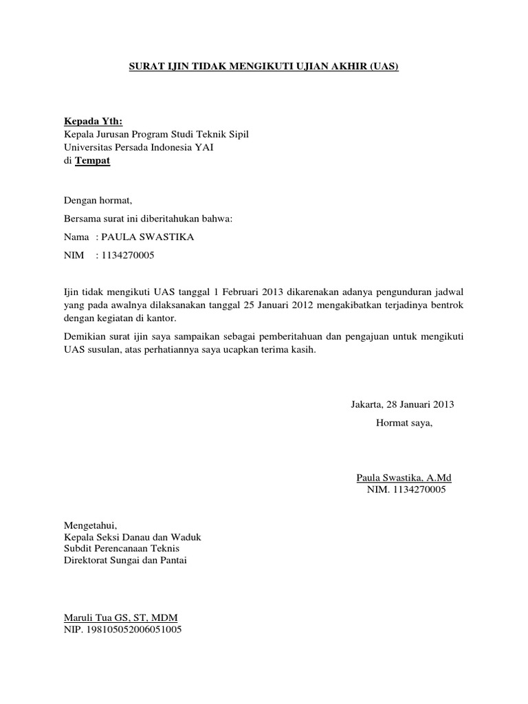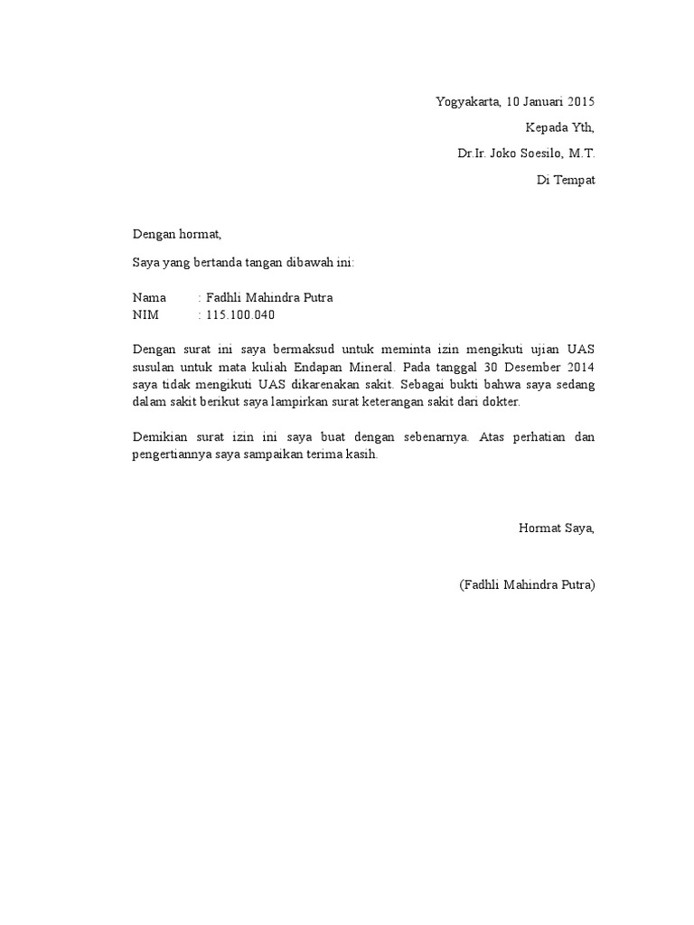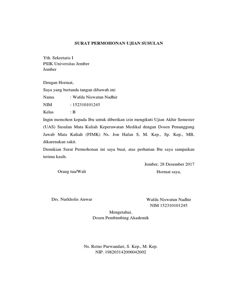 Surat permohonan ujian susulan uas. Saya membuat surat permohonan ujian susulan itu. Pendaftaran UAS Susulan untuk Reguler A tanggal 07 19 Januari 2019. SURAT PERMOHONAN UJIAN SUSULAN UTSUAS Kepada Yth.