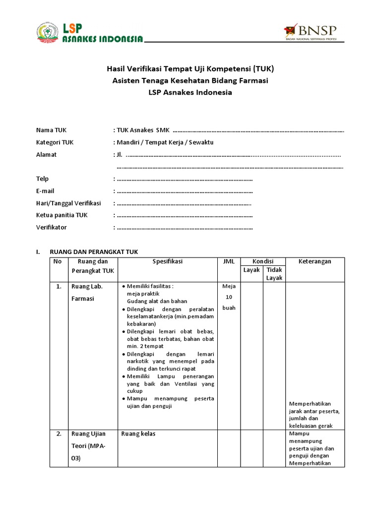 Hasil Verifikasi Di Sektor Pariwisata. Periksa kelengkapan alat dan dokumen. Formulir Surat tugas FRTUK-012 Bagian Manajemen Mutu Asesor Lisensi.