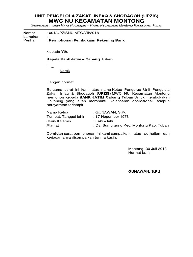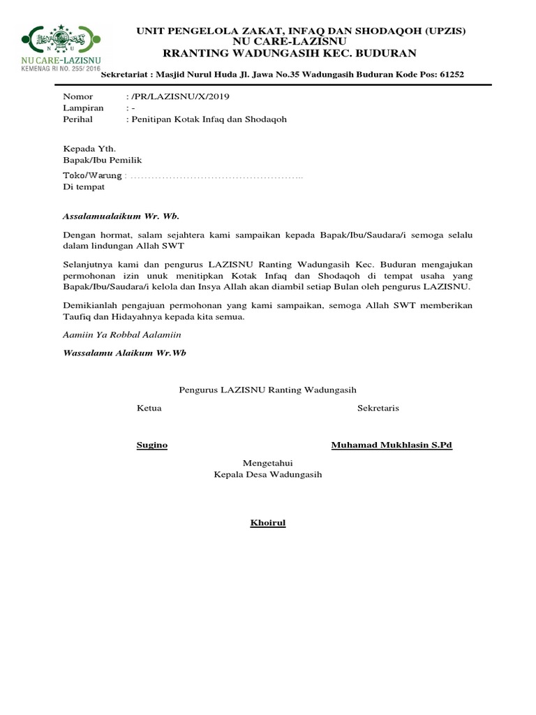 Surat Permohonan Zakat Infaq Shodaqoh