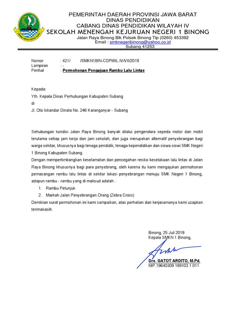 Waktu Pelayanan 3 tiga hari setelah persyaratan lengkap. Kontruksi Bangunan Pengecatan Marka Jalan Zebra 2011 Rp 182267000 Pendidikan BG007 Cross Kota Banjarbaru 2. Berikut ini adalah contoh surat permohonan re address via pustakasurat contoh surat perintah tugas spt untuk menjaga keamanan via contohsuratindonesia surat permohonan perpanjangan kontrak kerja sama via scribd surat hasil akreditasi poltekkes dari kemenkes contoh surat via berkas surat.